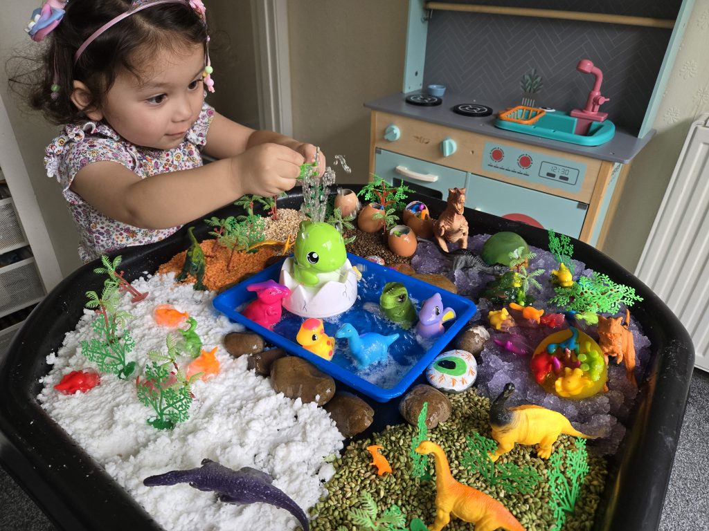 The water-splashing dinosaur activity was a pleaser! My little one especially enjoyed holding the frozen dinosaur ice cubes and melting them to rescue the tiny dinosaurs trapped inside. Watching the ice melt into water was one of the most enjoyable parts of the experience.